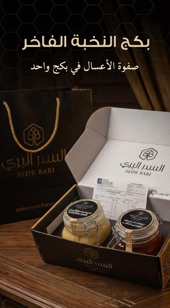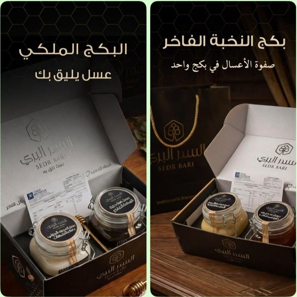الـبكـج الـملـكـي و بـكـج الـنـخبـة الـفـاخـرأولاً الـبكـج الـملـكـييحتوي على علبة عسل زهرة حبة البركة الفاخر 500جراموعلبة عسل المجرى الجبلي بغذاء الملكات 500جراماكتشـــف مزيـــج كريمي من العســـل الأبيـــض الفاخـــر وغذاء الملكات.يتم اســـتخلاص العســـل الأبيض الجبلي الفاخر بعناية من رحيق أزهـــار العنبريـــس(Sainfoin)التـــي تنمـــو فـــي أعالـــي الجبـــال ، و يمزج مع غذاء الملكات الغني بالفيتامينات والأحماض الأمينية ومضادات الأكســـدة، مما يجعله مكملا طبيعيا رائعا.عســـل المجرى الجبلي بغذاء الملكات معـــروف بجودته العالية وملمســـه الفاخـــر، يتميز هذا النوع من العســـل بلونـــه الأبيض الناصع وقوامه الكريمـــي، وطعمـــه اللذيـــذ والخفيـــف علـــى الفـــم، ليقدم لك مذاق غني ومفيديقوي جهاز المناعة لاحتوائه على مضادات أكسدة وفيتامينات التي تقي الجسم من الأمراض.يحسن عملية الهضم وتهدئة الجهاز الهضمي وتقليل مشاكل المعدة.جرعة طبيعية من الفيتامينات والمعادن التي تعزز الطاقة والنشاط اليومي.يعزز من النشاط العام ويزيد الطاقة.عسل المجرى الجبلي بغذاء الملكات من متجر السدر هو مزيج فاخر يجمع بين طعم العسل النقي وفوائد غذاء الملكات، حيثُ يحتوي هذا العسل على تركيبة متوازنة من عسل المجرى الجبلي وغذاء الملكات الطازج ، ليقدّم لك تجربة فريدة وغنية بالقيمة الغذائية والنقاء الطبيعي.مواصفات عسل المجرى الجبلي بغذاء الملكاتالمكونات: غذاء ملكات النحل الطبيعي الطازج وبتركير جدا ممتاز لضمان الفائدة ، عسل مجرى جبلي قرقيزي فاخر طبيعي 100%.الوزن: 500 جرام.مميزات عسل المجرى الجبلي بغذاء الملكاتطعم مميز: لذيذ وغني، مناسب لجميع محبي العسل.تركيبة طبيعية 100%.غني بالقيمة الغذائية مما يجعله خيارًا صحيًا .رائحة جذابة: يمكن تمييز جودة العسل بمجرد فتح العبوة.نصائح الاستخدام:يُفضل تناول ملعقة صغيرة إلى كبيرة على معدة فارغة صباحاً.يمكن خلطه مع الماء الدافئ أو الحليب.⚪️⚪️⚪️⚪️⚪️⚪️⚪️⚪️⚪️⚪️⚪️⚪️⚪️⚪️⚪️بـكـج الـنـخبـة الـفـاخـريحتوي على علبة عسل السدر البري الطبيعي البشاوري الفاخر 500جراموأيضاً يحتوي على علبة مجموعة الأعسال السبعة الفاخرة 500جراممزيج لمجموعة من أرقى أنواع العسلالطبيعي %100تم إختيار أصناف العسل عبر مجموعة متميزة من الخبراء والمتخصصين في مجال النحل والعسل• عسل طلح حائل الفاخر• عسل الشفلح البلدي الفاخر• عسل السدر الحضرمي الفاخر• عسل السمـرة الحضرمي الفاخر• عسل السدر البري البشاوري الفاخر• عسل المجرى الجبلي الفاخر• عسل زهرة حبة البركة الفاخرمزيج فاخر لأفضل سبعة من أجود أنواع العسل الطبيعي وأكثرها طلباًكل نوع له خصائص وفؤاد تختلف عن الأنواع الأخرى مثل الفيتامينات والبروتينات والمعادن والأحماض الأمينية وغيرها من العناصر الغذائية والإنزيمات العلاجية التي تدعم الصحة وتزيد الحيوية.مجموعة الأعسال السبعة ليس مجرد عسل, بل هو رحلة مذاق تأخذك إلى قلب الطبيعة, حيث تتداخل النكهات وتلتقي المتعة مع لمسات الزهور البريةكل ملعقة من هذا العسل الفاخر تمنحك طاقة طبيعية ومذاق لا يُنسىقوام العسل ناعم وانسيابي بلون كهرماني جذاب يعكس نقاءه وجودته.المذاق رائع وجميل يجمع بين طعم الأعسال الفاخرة والنكهة العميقة الزهرية الطازجة.إكتشف متعة العسل كما لم تعرفها من قبلكل قطرة من قطرات هذا العسل الفاخر تروي قصة نحل بين الجبال والوديان والأزهارمعبأ في العبوة الزجاجية الأصلية المعروفة، أنيقة وتحافظ على نقاء العسل وجودتهمواصفات وجودةٌ لا تتكرر تجعل هذا المنتج مميزاًمنتج حصري – متوفر فقط لدى "السدر البري", مما يضمن لك الجودة بأدق التفاصيلاستمتع بتجربة لا تُضاهى!